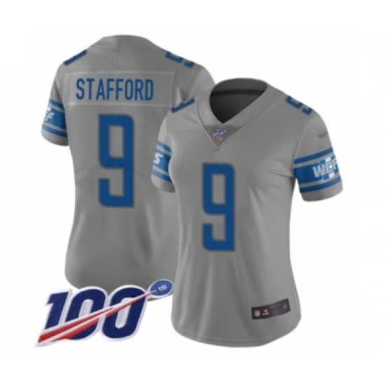 >Women's Detroit Lions #9 Matthew Stafford Limited Gray Inverted Legend 100th Season Football Jersey