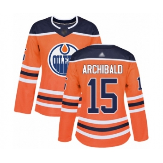 Women's Edmonton Oilers #15 Josh Archibald Authentic Orange Home Hockey Jersey