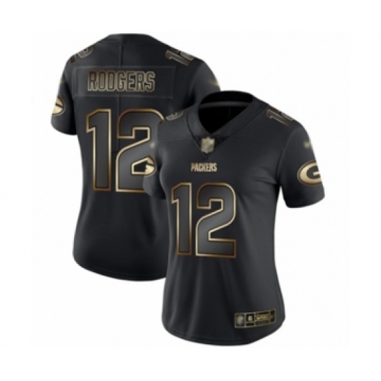 >Women's Green Bay Packers #12 Aaron Rodgers Limited Black Gold Vapor Untouchable Limited Football Jersey