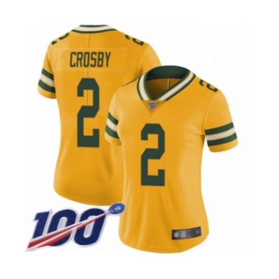 >Women's Green Bay Packers #2 Mason Crosby Limited Gold Rush Vapor Untouchable 100th Season Football Jersey