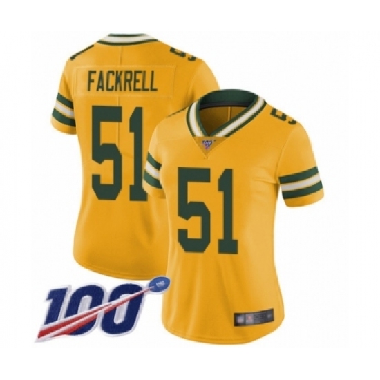 Women's Green Bay Packers #51 Kyler Fackrell Limited Gold Rush Vapor Untouchable 100th Season Football Jersey