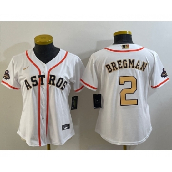 Women's Houston Astros #2 Alex Bregman 2023 White Gold World Serise Champions Cool Base Stitched Jersey
