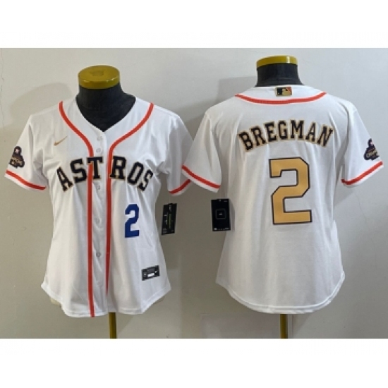 Women's Houston Astros #2 Alex Bregman Number 2023 White Gold World Serise Champions Cool Base Stitched Jersey
