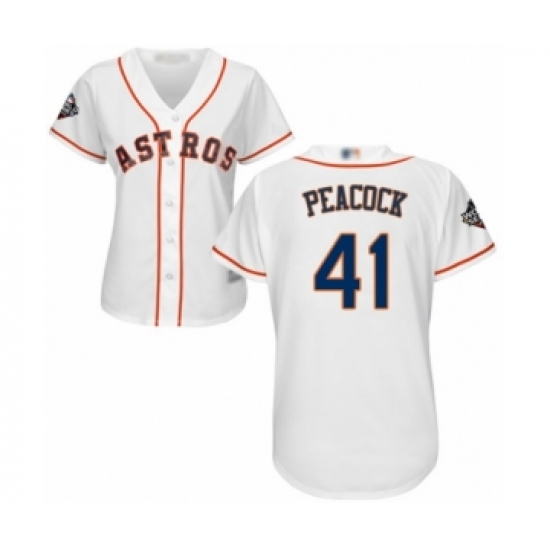 Women's Houston Astros #41 Brad Peacock Authentic White Home Cool Base 2019 World Series Bound Baseball Jersey