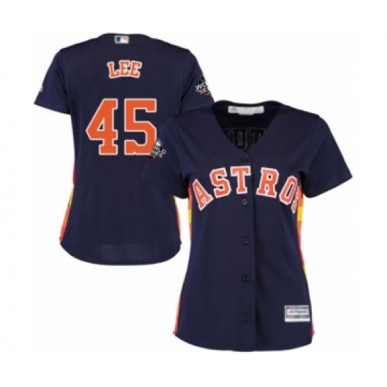 Women's Houston Astros #45 Carlos Lee Authentic Navy Blue Alternate Cool Base 2019 World Series Bound Baseball Jersey