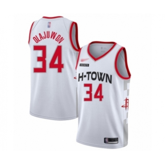 >Women's Houston Rockets #34 Hakeem Olajuwon Swingman White Basketball Jersey - 2019 20 City Edition