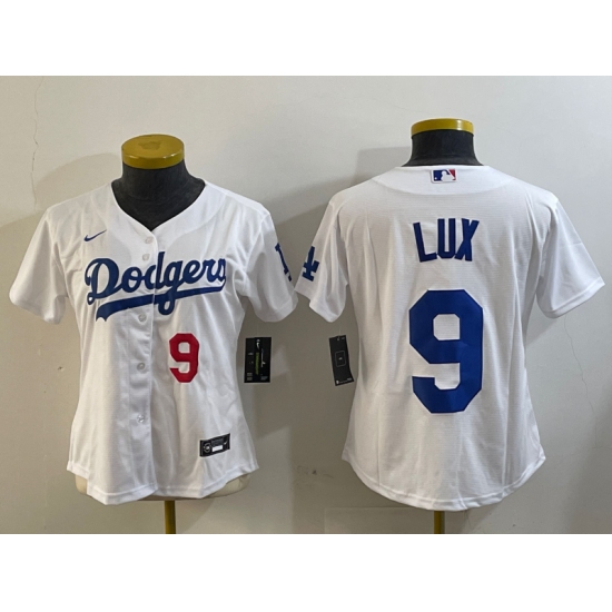 >Women's Los Angeles Dodgers #9 Gavin Lux White Stitched Cool Base Nike Jerseys