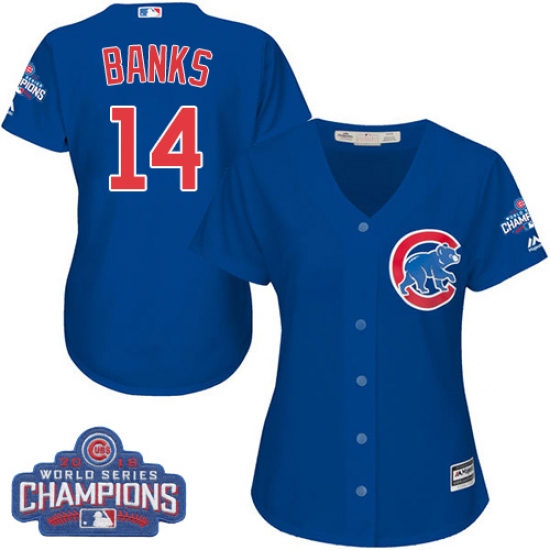 Home>MLB>Chicago Cubs>Ernie Banks>Women's Majestic Chicago Cubs #14 Ernie Banks Authentic Royal Blue Alternate 2016 World Series Champions Cool Base MLB Jersey