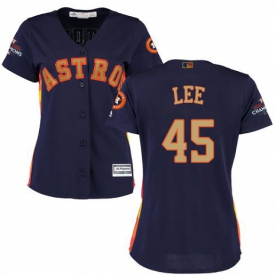Women's Majestic Houston Astros #45 Carlos Lee Authentic Navy Blue Alternate 2018 Gold Program Cool Base MLB Jersey