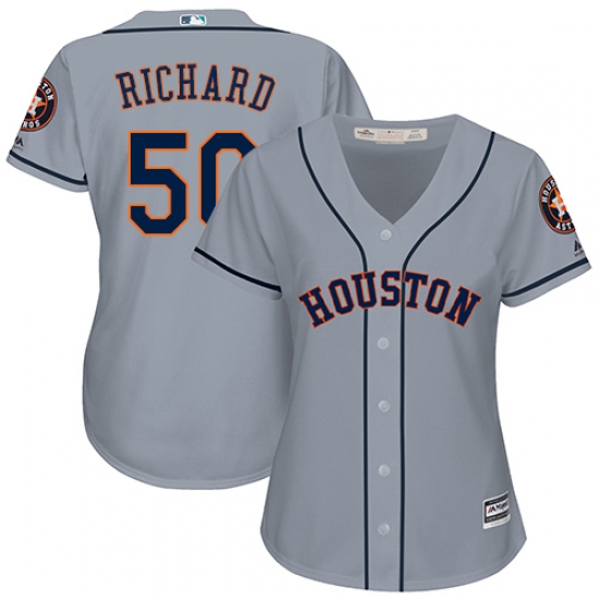 Home>MLB>Houston Astros>J.R. Richard>Women's Majestic Houston Astros #50 J.R. Richard Authentic Grey Road Cool Base MLB Jersey