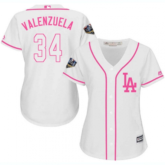 Women's Majestic Los Angeles Dodgers #34 Fernando Valenzuela Authentic White Fashion Cool Base 2018 World Series MLB Jersey