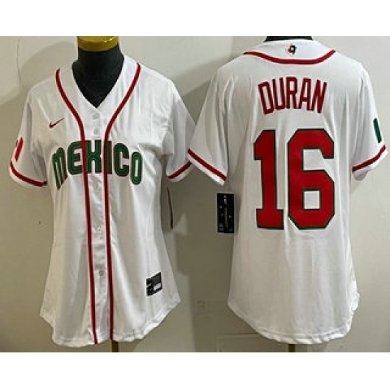 Women's Mexico #16 Jarren Duran White 2026 World Baseball Classic Cool Base Jersey