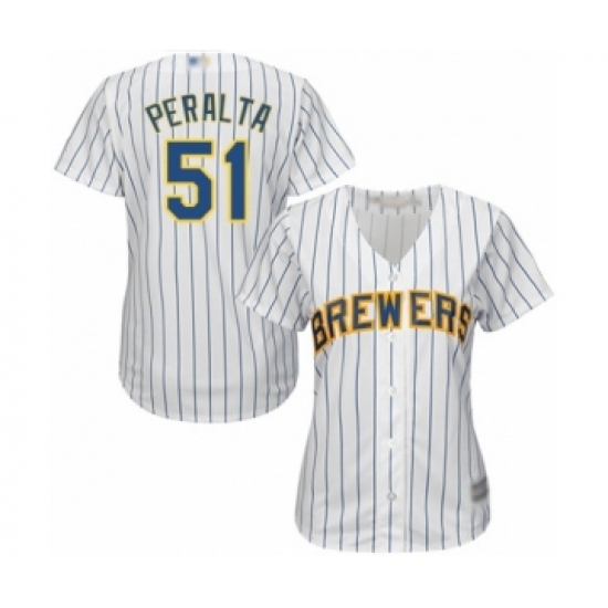 Women's Milwaukee Brewers #51 Freddy Peralta Authentic White Home Cool Base Baseball Player Jersey