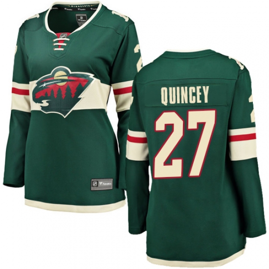 Home>NHL>Minnesota Wild>Kyle Quincey>Women's Minnesota Wild #27 Kyle Quincey Authentic Green Home Fanatics Branded Breakaway NHL Jersey