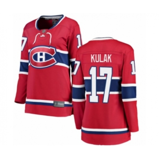 >Women's Montreal Canadiens #17 Brett Kulak Authentic Red Home Fanatics Branded Breakaway Hockey Jersey