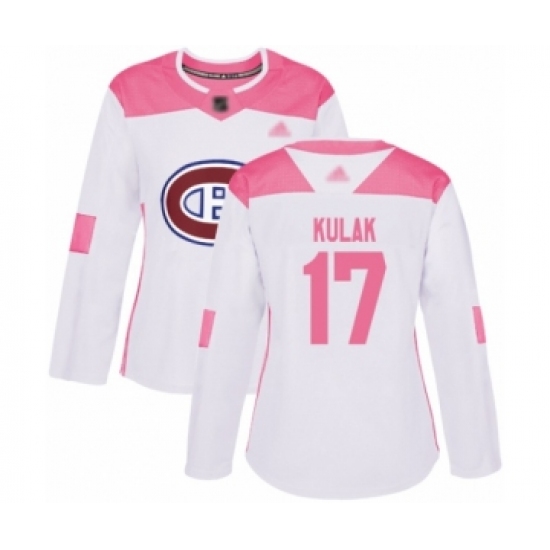 Women's Montreal Canadiens #17 Brett Kulak Authentic White Pink Fashion Hockey jersey