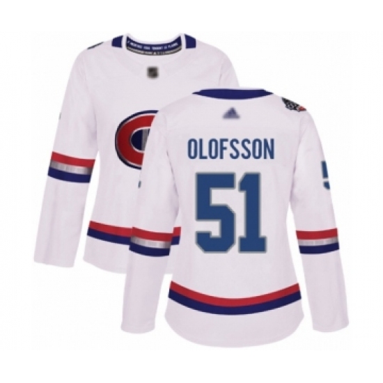 >Women's Montreal Canadiens #51 Gustav Olofsson Authentic White 2017 100 Classic Hockey Jersey