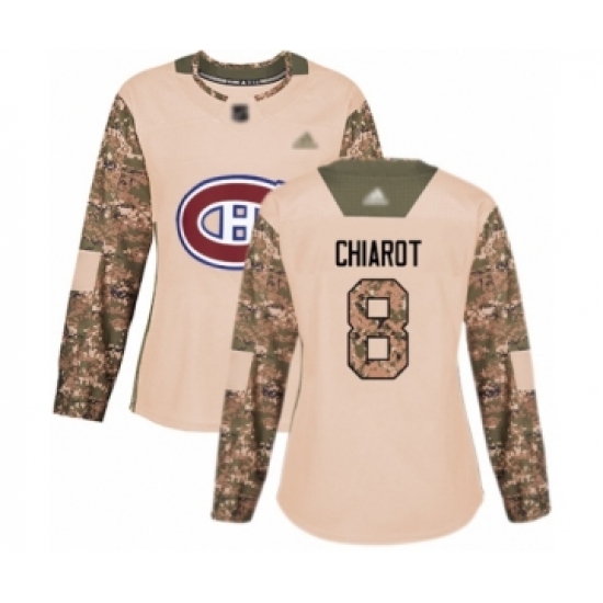 >Women's Montreal Canadiens #8 Ben Chiarot Authentic Camo Veterans Day Practice Hockey Jersey