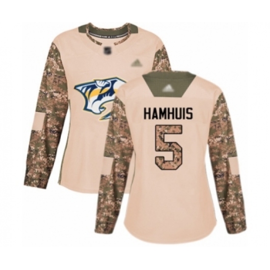 >Women's Nashville Predators #5 Dan Hamhuis Authentic Camo Veterans Day Practice Hockey Jersey