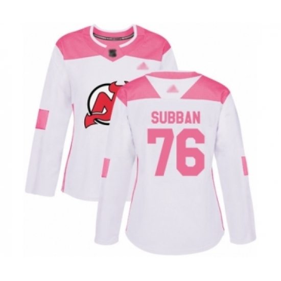 >Women's New Jersey Devils #76 P. K. Subban Authentic White Pink Fashion Hockey Jersey