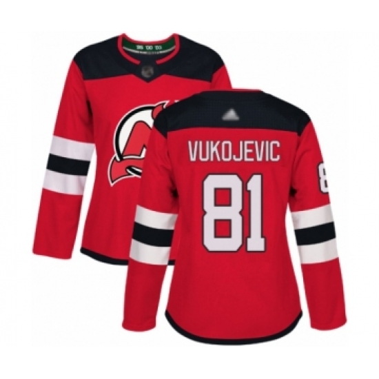 Women's New Jersey Devils #81 Michael Vukojevic Authentic Red Home Hockey Jersey