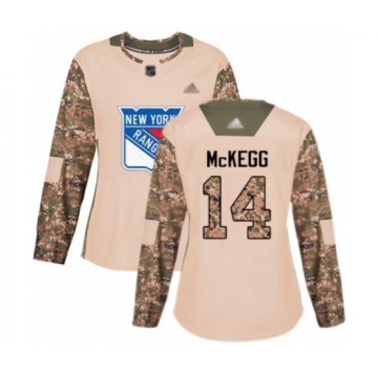 >Women's New York Rangers #14 Greg McKegg Authentic Camo Veterans Day Practice Hockey Jersey