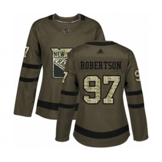 >Women's New York Rangers #97 Matthew Robertson Authentic Green Salute to Service Hockey Jersey