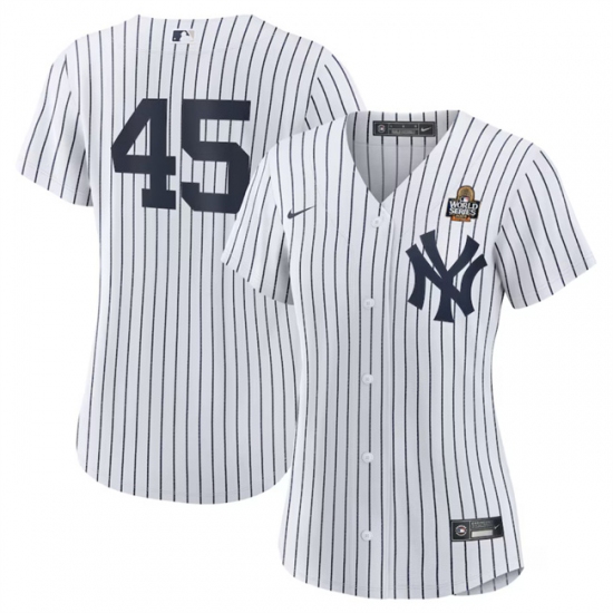 >Women's New York Yankees #45 Gerrit Cole White 2024 World Series Cool Base Stitched Baseball Jersey(Run Small)