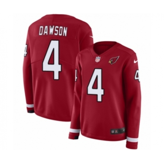 >Women's Nike Arizona Cardinals #4 Phil Dawson Limited Red Therma Long Sleeve NFL Jersey