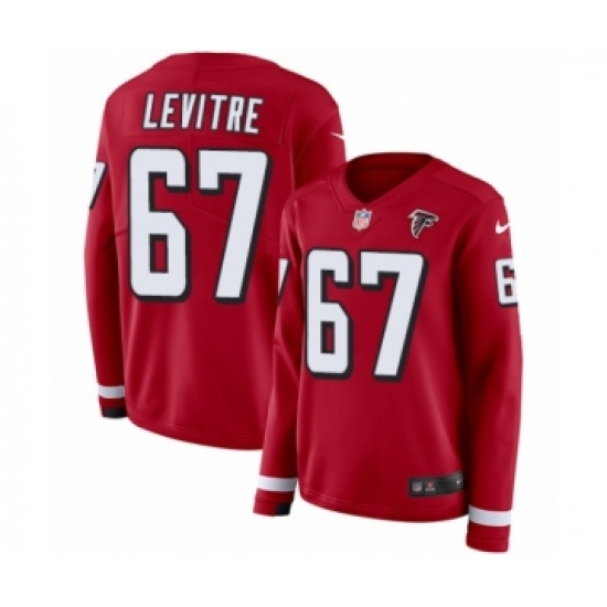 >Women's Nike Atlanta Falcons #67 Andy Levitre Limited Red Therma Long Sleeve NFL Jersey