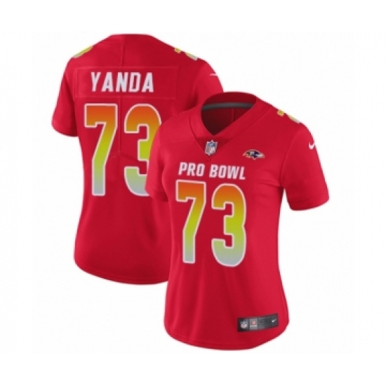 >Women's Nike Baltimore Ravens #73 Marshal Yanda Limited Red AFC 2019 Pro Bowl NFL Jersey