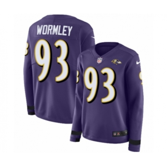 Women's Nike Baltimore Ravens #93 Chris Wormley Limited Purple Therma Long Sleeve NFL Jersey