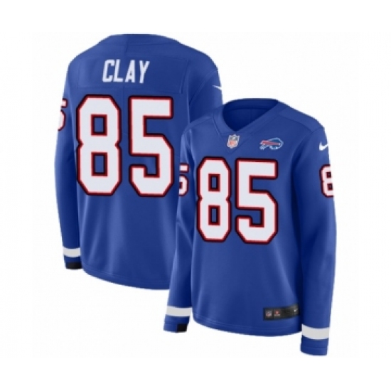 >Women's Nike Buffalo Bills #85 Charles Clay Limited Royal Blue Therma Long Sleeve NFL Jersey
