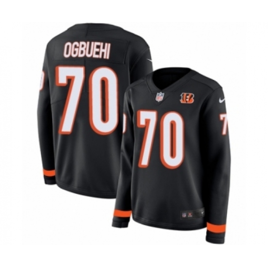 >Women's Nike Cincinnati Bengals #70 Cedric Ogbuehi Limited Black Therma Long Sleeve NFL Jersey