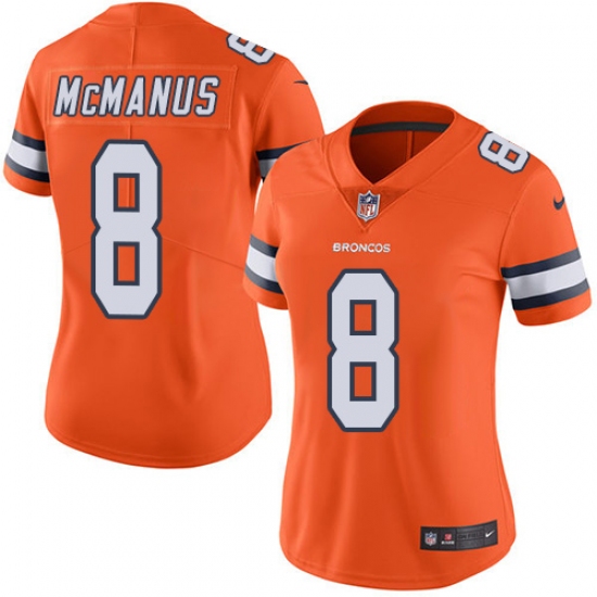Women's Nike Denver Broncos #8 Brandon McManus Limited Orange Rush Vapor Untouchable NFL Jersey