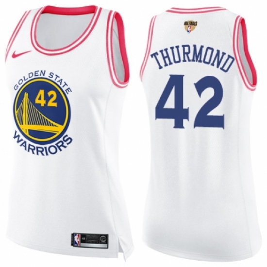 >Women's Nike Golden State Warriors #42 Nate Thurmond Swingman White/Pink Fashion 2018 NBA Finals Bound NBA Jersey
