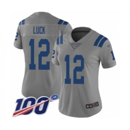 Women's Nike Indianapolis Colts #12 Andrew Luck Limited Gray Inverted Legend 100th Season NFL Jersey