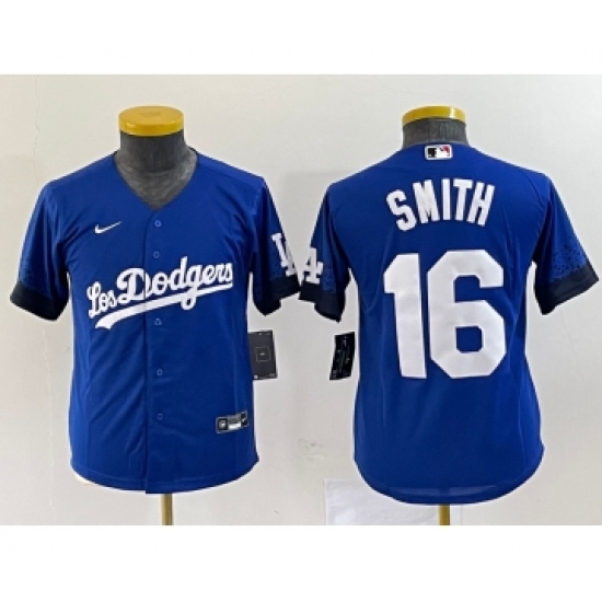 >Women's Nike Los Angeles Dodgers #16 Will Smith Blue Stitched Cool Base Jersey