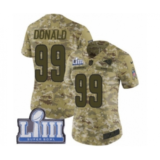 >Women's Nike Los Angeles Rams #99 Aaron Donald Limited Camo 2018 Salute to Service Super Bowl LIII Bound NFL Jersey