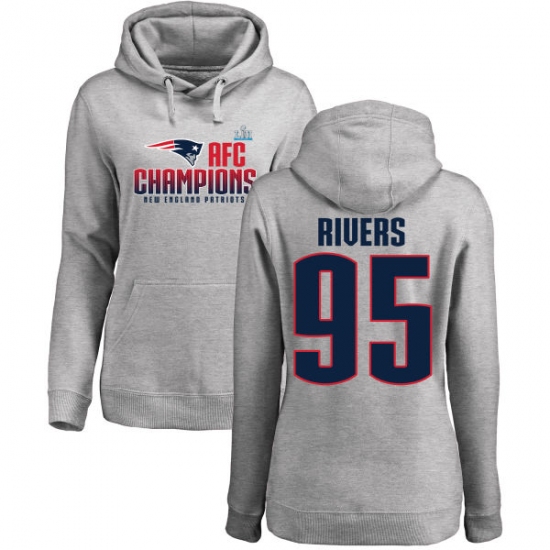 >Women's Nike New England Patriots #95 Derek Rivers Heather Gray 2017 AFC Champions Pullover Hoodie