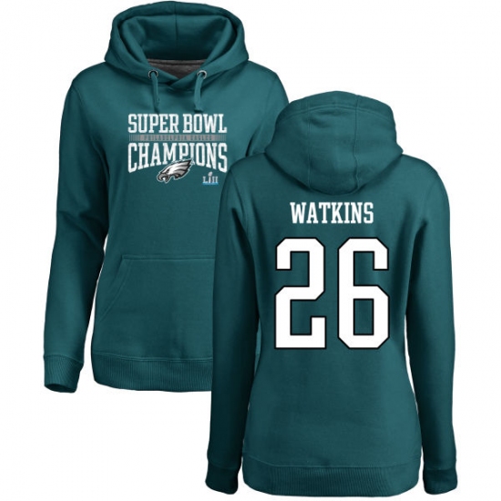 Women's Nike Philadelphia Eagles #26 Jaylen Watkins Green Super Bowl LII Champions Pullover Hoodie