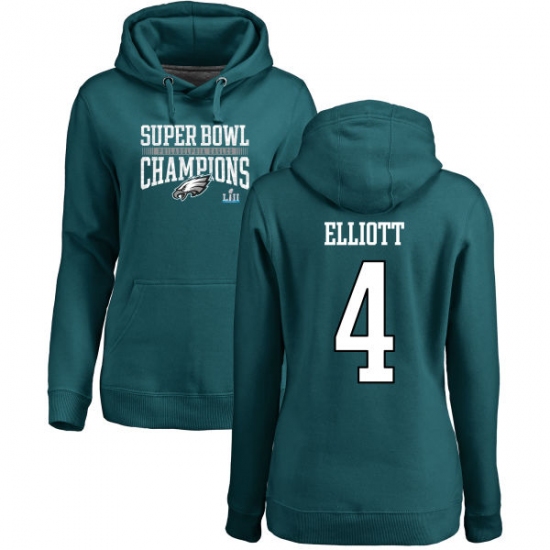 Women's Nike Philadelphia Eagles #4 Jake Elliott Green Super Bowl LII Champions Pullover Hoodie