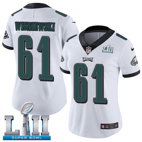 Women's Nike Philadelphia Eagles #61 Stefen Wisniewski White Vapor Untouchable Limited Player Super Bowl LII NFL Jersey