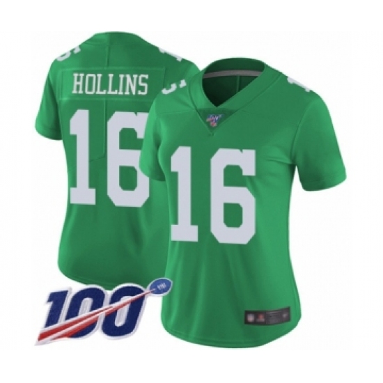 >Women's Philadelphia Eagles #16 Mack Hollins Limited Green Rush Vapor Untouchable 100th Season Football Jersey