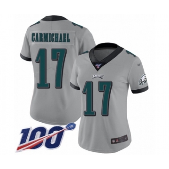 >Women's Philadelphia Eagles #17 Harold Carmichael Limited Silver Inverted Legend 100th Season Football Jersey