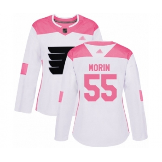 >Women's Philadelphia Flyers #55 Samuel Morin Authentic White Pink Fashion Hockey Jersey