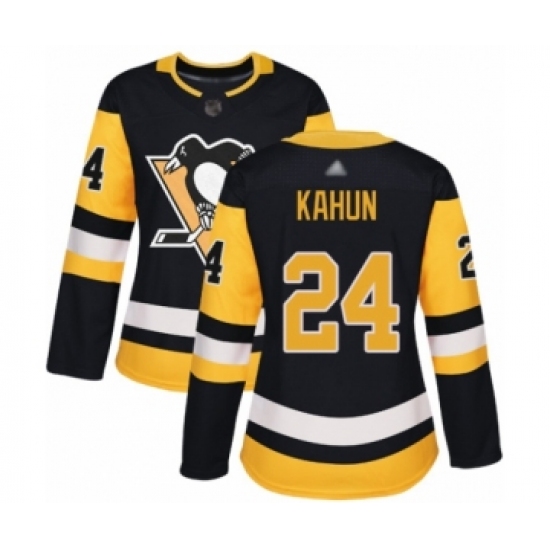>Women's Pittsburgh Penguins #24 Dominik Kahun Authentic Black Home Hockey Jersey