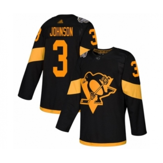 >Women's Pittsburgh Penguins #3 Jack Johnson Authentic Black 2019 Stadium Series Hockey Jersey