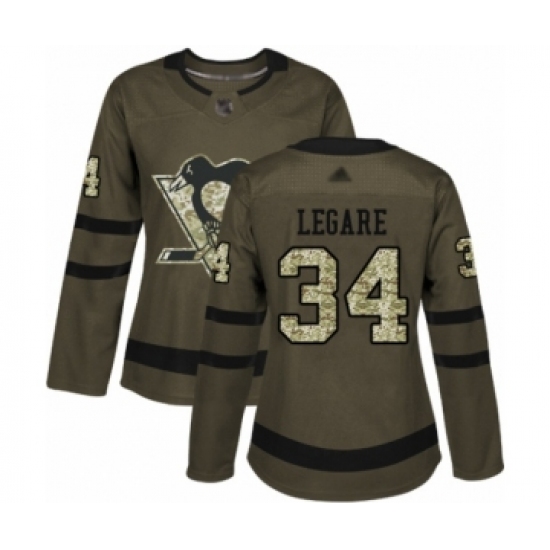 Women's Pittsburgh Penguins #34 Nathan Legare Authentic Green Salute to Service Hockey Jersey