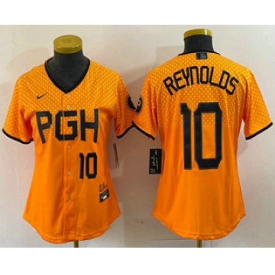 Women's Pittsburgh Pirates #10 Bryan Reynolds Number Yellowd 2023 City Connect Stitched Jersey1